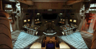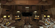 Hier blickst Du von hinten auf den Stuhl des Captains, die Conn, die OPS und den Sichtschirm.