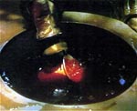 Zu Empfehlen ist dazu ein guter Blutwein, der getrunken wird, um die Würmer zu ersäufen!
