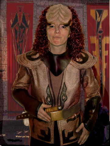 Es lag wohl etwas an meiner Unentschlossenheit aber ich wurde Wissenschaftlerin, die gerne kämpfte. So bewarb ich mich auf der IKV may'targh um einen Posten.Wie bei so vielen Häusern, lebte auch mein tuq in einer Blutfehde, das Q'Daq tuq waren unsere ärgsten Feinde, mein Vater war der festen Überzeugung, daß dieses Haus gegen das Reich integrierte, er suchte nur noch nach den letzten Beweisen. D'lor war der Hitzkopf in unserer Familie und griff das Q'Daq tuq an wo er nur konnte. Ich war in meiner Abteilung auf der IKV may'targh, als mich die Nachricht vom Tod meines Bruders erreichte, ich schrie vor Wut und kehrte nach Qon'oS zurück. Meine Eltern waren schon auf ihrem Rachefeldzug und ich eilte ihnen nach. Die Schlacht tobte schon im vollen Ausmass als ich dort ankam. Ich zog meine Waffe und stürmte hinzu, meine Mutter lag schon in ihrem Blut und auch mein Vater war schon schwer verwundet. Als ich das sah kämpfte, ich wie ein Berseker und tötete alle Feinde, die noch übrig waren. Vollkommen erschöpft und schwerverletzt sah ich nach meinen Eltern, doch jede Hilfe kam zu spät, ich schrie und begleitete sie so ins Stovokor. Nach dem meine Wunden verheilt waren trat ich vor den Hohen Rat und legte die Beweise meines Vaters vor. Der hohe Rat erteilte mir die Erlaubnis das qultuq zu führen, und ich kehrte auf die IKV may'targh zurück. Nach vielen Jahren, ich war schon auf die IKV luqara versetzt, kamen mir Gerüchte zu Ohren, daß es noch ein Mitglied des qultuq geben sollte. Wer auch immer behaupten sollte in mein tuq geboren zusein, der soll gewarnt sein, nur wer das Geburtsmal unserer Familie trägt, das die Form unseres Hauszeichens aufweist, wird bei mir Gehör finden. Irgendwann werde ich Krieger finden ,die es würdig sind dem qultuq anzugehören, doch das wird die Zeit zeigen und niemand wird sich hier einschleichen können.