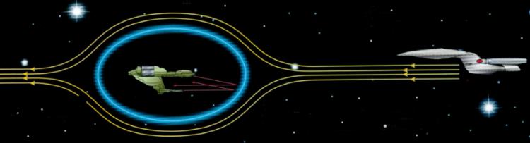 Die Tarntechnologie beruht auf einer einfachen Idee. Es ist bekannt, das alles was das Auge wahrnehmen kann, der Tatsache entspricht, das Licht auf ein Objekt fällt und reflektiert wird. Dieses Wissen hat man umgesetzt. Denn auch Sensoren arbeiten wie die Augen. Sensoren sind ja auch nichts anderes als die Augen von Raumschiffen. Sensoren erkennen Objekte auf die gleiche Weise, es werden Lichtstrahlen reflektiert. Die Tarnvorrichtung generiert nun ein Schild, welches den Raum um das Schiff derart krümmt, das das Licht am Schiff vorbeigeleitet wird und es entsteht der Eindruck von leerem Raum.