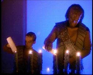 Danach werden die beiden mit ihren Kerzen an einen weiteren Tisch gehen, auf dem sechs Graue aufgestellt sind. Jeder wird nun 3 von ihnen entzünden, von links nach recht. Damit wird das Wachstum der Familie symbolisiert. Die erste für das Individum, über die zweite -- Symbol für die beiden, die sich verbrüdern -- und schließlich die Dritte und letzte Kerze. Alle sechs Kerzen zusammen stellen die 6 zukünftigen Generationen dar. Das ist besonders wichtig, wissen wir doch, das beispielsweise bei einer Entehrung, diese für die nächsten sechs Generationen gilt! Zum Schluß werden die beiden nun verbrüderten ihre Kerzen neben die jeweils zuerst entzündete stellen.